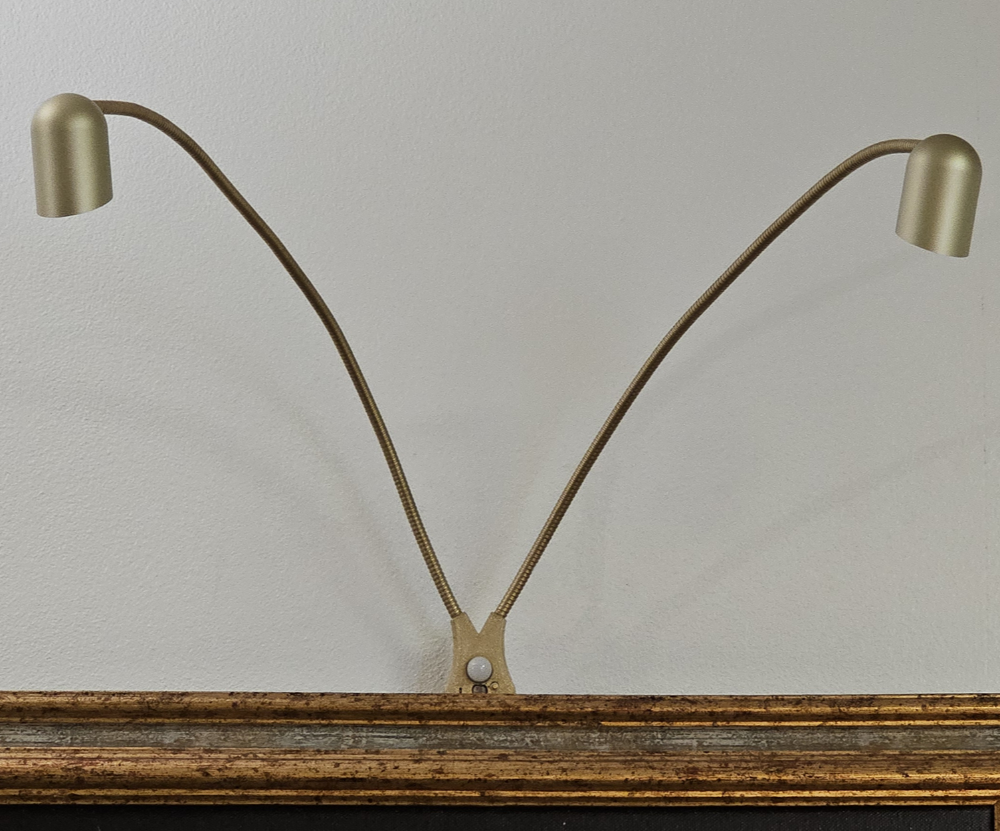 Félicité Luxe : Lampe autonome 2 têtes aluminium anodisé pour tableau large (largeur inférieure à 90cm)